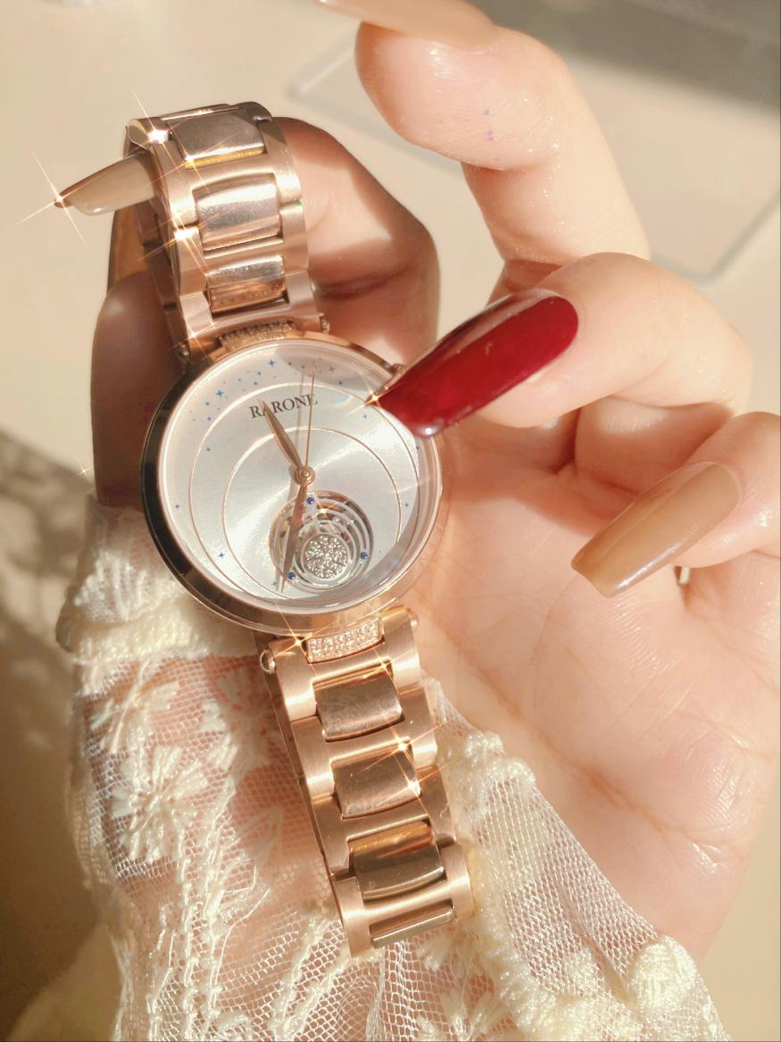 戀愛中男生每次給女朋友想禮物是不是都想破腦袋啦,雖然很了解女朋友的性格和愛好,但是在選擇送給女朋友的禮物時總是難免會有選擇恐懼癥。男孩給女朋友送禮物的重要性是不用說的,如果禮物足夠好,他們將贏得愛人的青睞。如果真的很糟糕,那不僅會有情感危機,還可能讓自己陷入后悔深淵。如果你真的不知道怎么送女朋友禮物?不如跟著小編來選擇,RARONE雷諾表銀河系列女士機械手表,肯定是不錯的選擇。