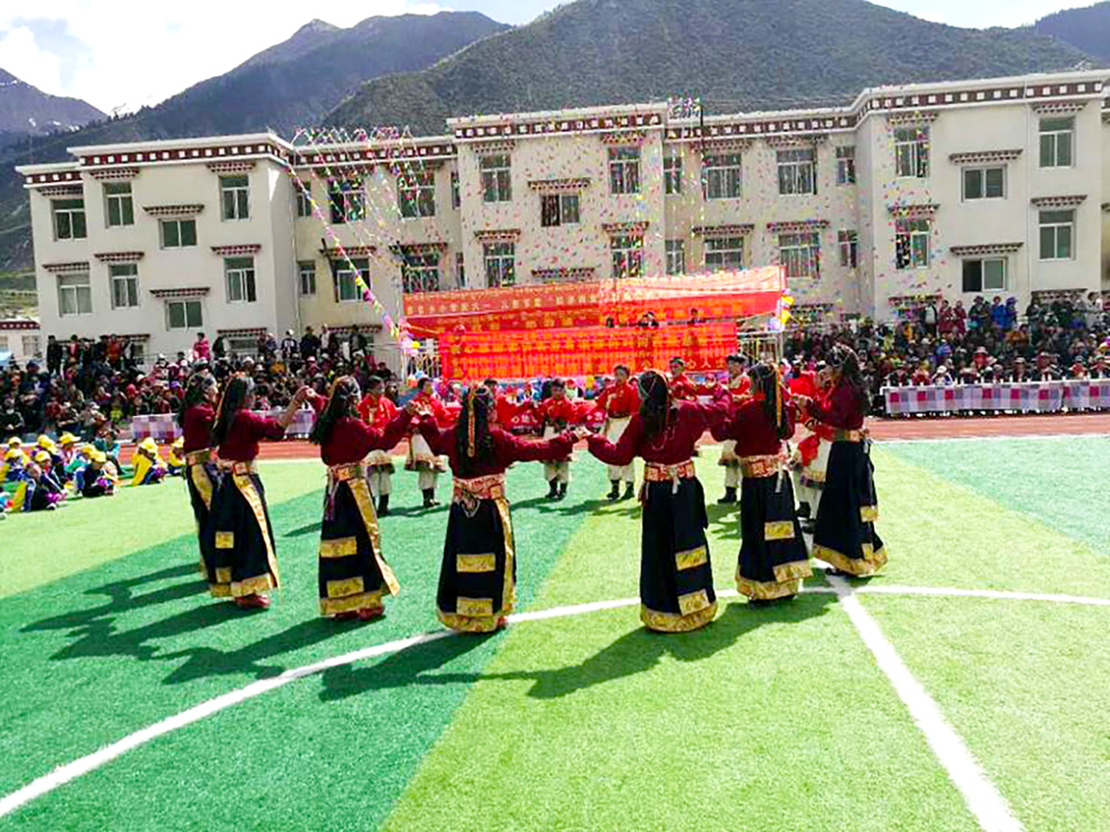 雷諾表業總經理詹江洲先生攜團隊遠赴邊疆,走進西藏波密縣多吉鄉小學,提前和邊疆的孩子們歡度節日,為邊疆的小朋友們送去了祝福和溫暖,孩子們以當地具有民族特色的非遺歌舞-帕雄熱巴舞迎接遠道而來的客人。