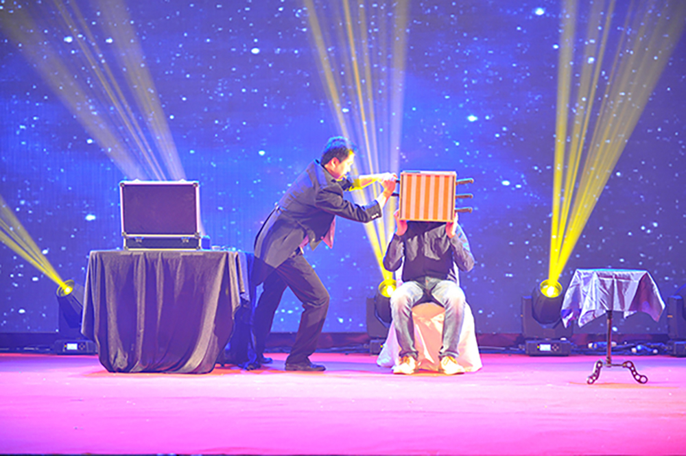 還有驚心動(dòng)魄的魔術(shù)表演,臺(tái)下的吃瓜群眾為表演者捏一把汗啊!