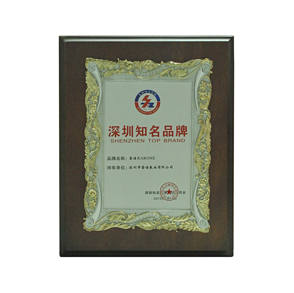 雷諾RARONE“深圳知名品牌”榮譽(yù)牌匾