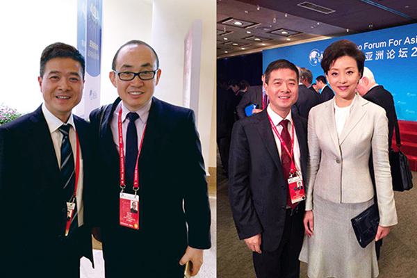 (雷諾表創始人之一、總經理詹江洲先生與SOHO中國董事長潘石屹先生(左圖)、知名主持人楊瀾女士合影)