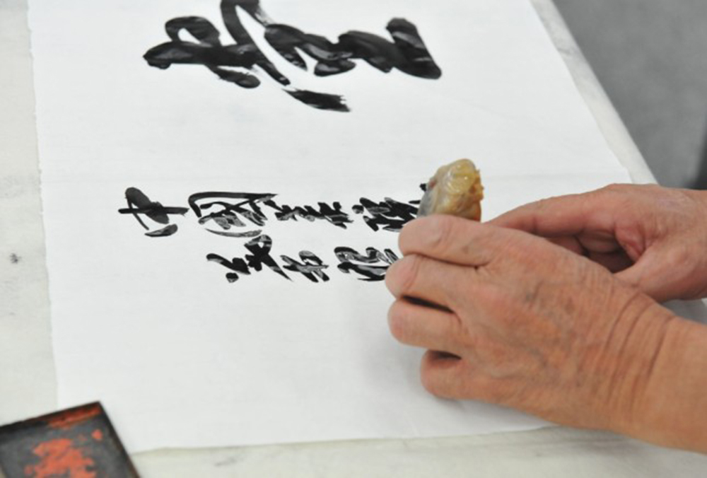 此次來訪的藝術(shù)家們?nèi)闉槔字Z表,揮毫潑墨,各自書寫珍貴的題詞和作品,藝術(shù)家們對藝術(shù)的尊重和熱愛,讓人心生敬意。