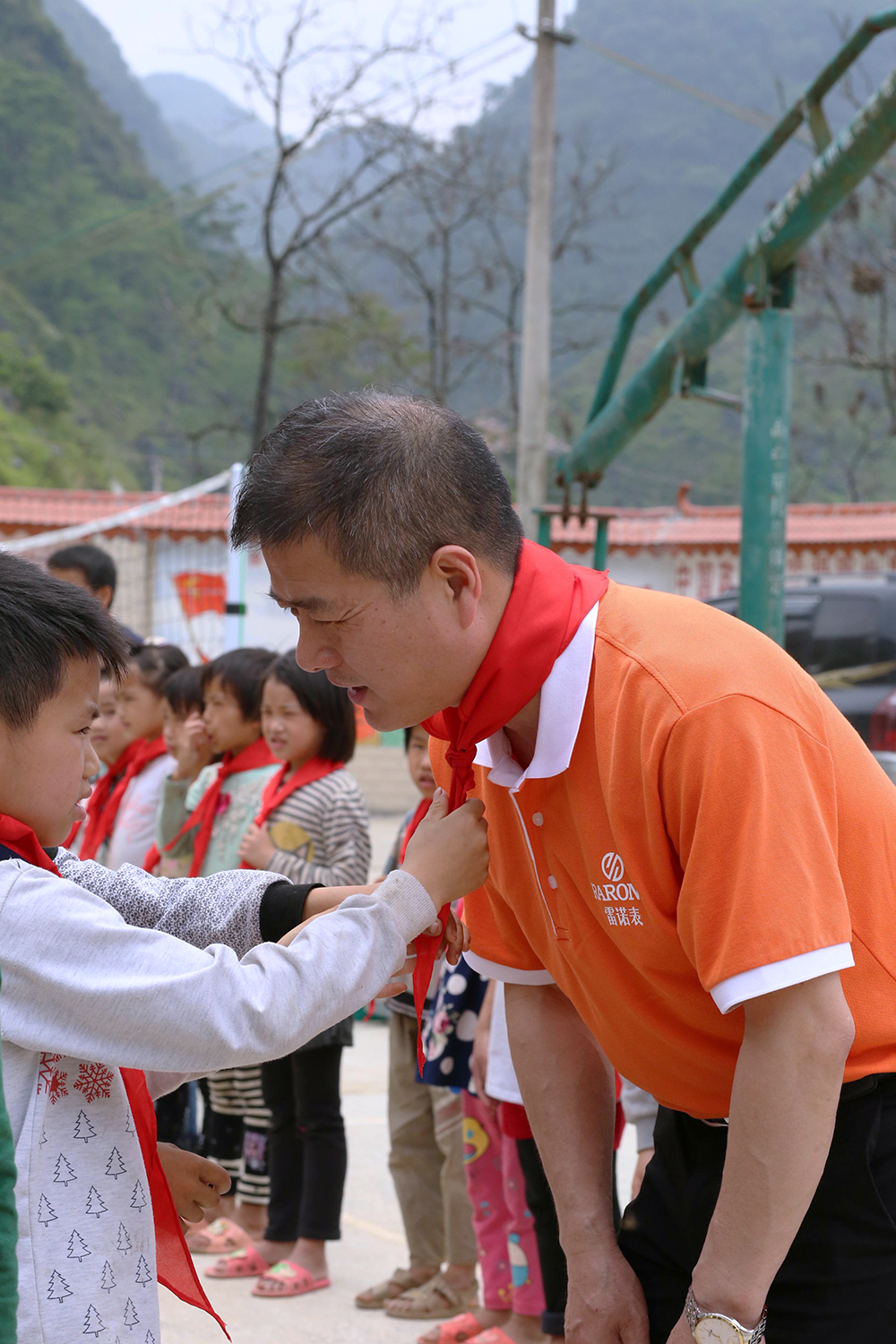 雷諾表愛心小組在總經(jīng)理詹江洲先生的帶領下,從南寧市區(qū)出發(fā),一路上綠水青山風景秀美,但在快要到達同社村的山路上,我們真正見識了九曲十八彎的大山路。經(jīng)過3個多小時的長途跋涉,我們的愛心車輛終于抵達同社村小學,遠遠就看到學校的孩子在校門口等待我們,當孩子們親手為我們系上鮮艷的紅領巾,雷諾表愛心小組的每個成員的使命感愈加強烈。